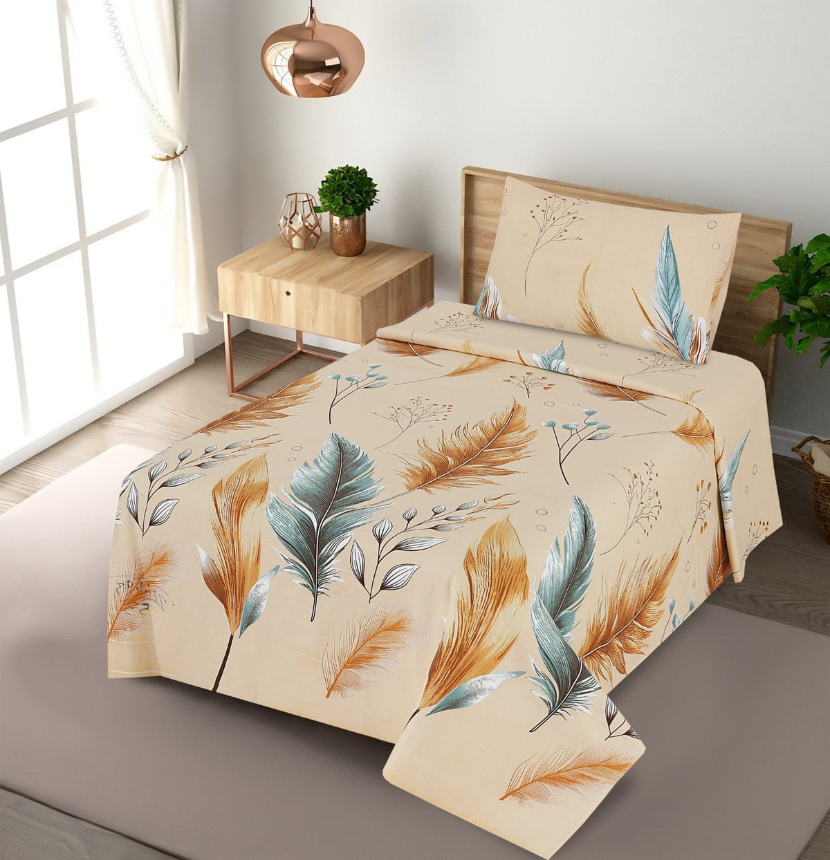 Category:  3 Pcs Printed Stitched Bedsheet Set Packages Contain:  Size: 01 Flat Sheet    / 95 x 100 Inches 02...